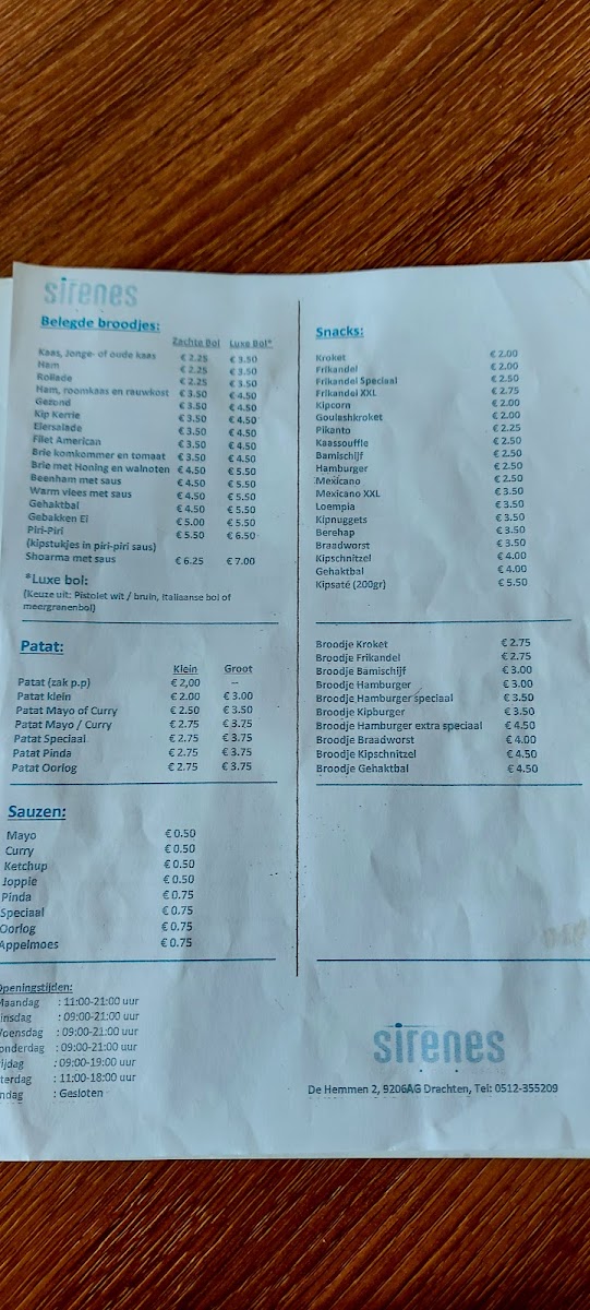 Welcome to Cafe Restaurant Sirenes, a delightful cafeteria nestled in Drachten, Netherlands. Here, you'll discover a menu that marries hearty flavors with generous portions, leaving you fully satisfied. Diners rave about the irresistible burger topped with egg and the scrumptious bread accompanied by ham and eggs. Each dish is crafted to offer both taste and value, making it an ideal stop for both locals and travelers alike.